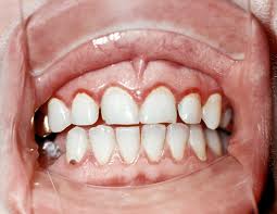 Симптоми: ясна набряклі, припухлі, кровоточать, печуть (при гострому), застійні, синюшні,набряклі, рихлі (при хронічному), з переходом пародонтиту в пародонтоз починають хитатися і випадати зуби, з поганий запах з рота.