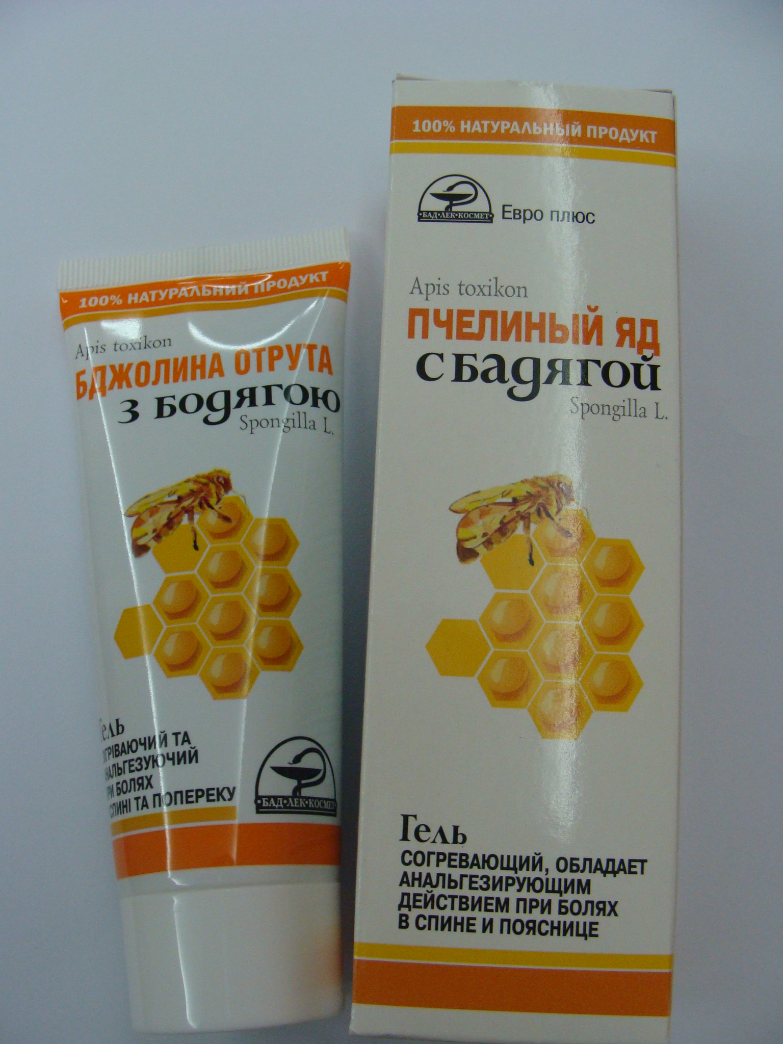 або зробити самому: 100 бджіл на 200 грам сала (або іншого тваринного жиру). Щоб з бджоли дістати отруту, берете якусь натуральну тканинку, складаєте її в кілька шарів, бджоли (живі) ловите пінцетом за ділянку тулуба і акуратно припідносите до складеної тканинки, щоб бджола вжалила тканину. Таким чином ви зможете назбирати жала разом з мішечками з апітоксином. Розтоплюєте жир, заливаєте ним тканину із жалами, трохи помішуєте і залишаєте на 1.5-2 тижні. Потім утворену мазь можете розтопити, щоб забрати тканину, а можете і так користуватися. До речі, при захворюваннях опорно-рухового апарату дуже позитивно себе показали медові масажі у поєднанні з вище описаною маззю.